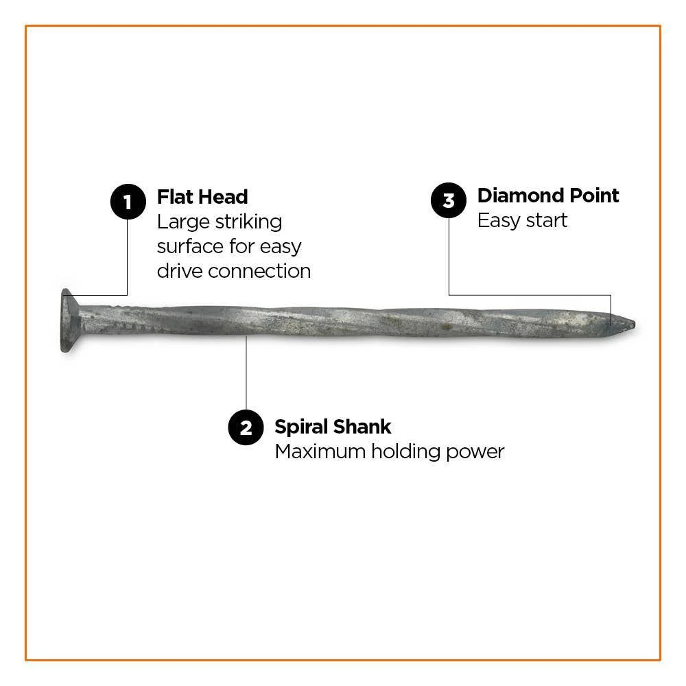 - Shank Style: Spiral shank resembles a screw pattern which offers superior holding power and withdrawal force