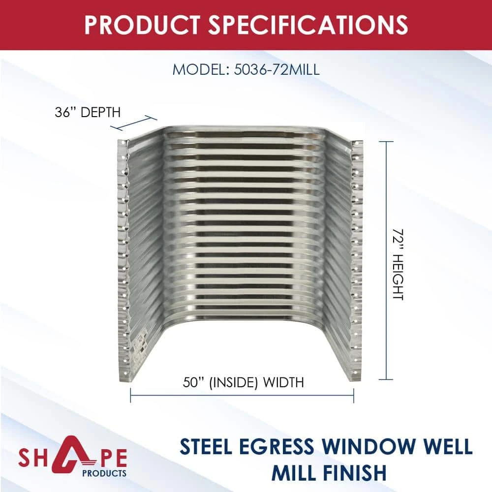 Shape Products Galvanized Steel Egress Window Wells allows for natural light to shine brilliantly into your basement living space. Constructed from lightweight, galvanized corrugated steel, this well is designed to ensure strength and easy installation. Radius corners allow for maximum egress access.